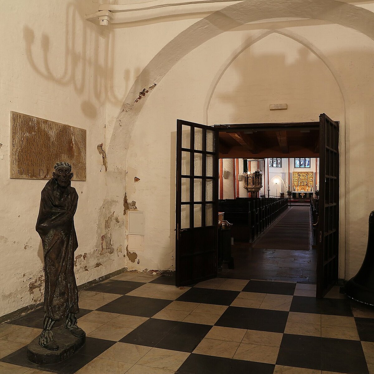 Gegendenkmal „Trauerndes Kind" vor der St.-Johannis-Kirche